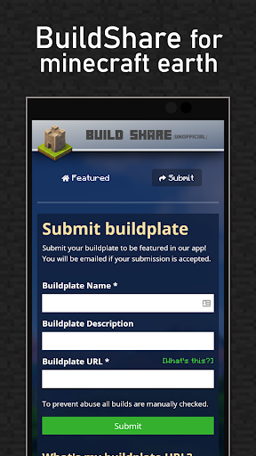 Once you've created a Minecraft Earth build plate of your own you can also easily share it with BuildShare. If your creation is approved then your build will be featured on our app for others to enjoy!