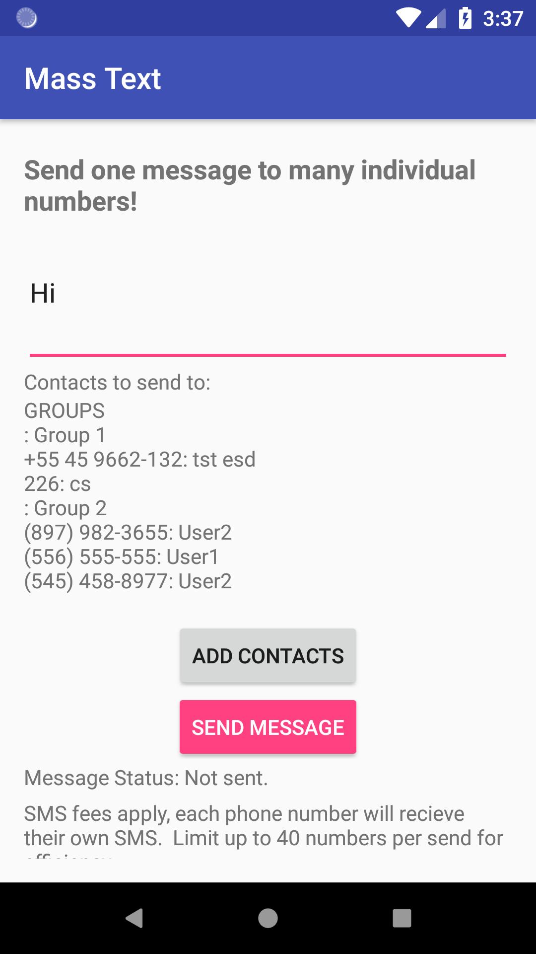 Being able to select multiple contacts will speed up the Bulk and Mass Texting process.
