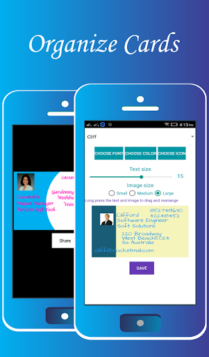 You can also create your own Business related Card using this application. It’s really useful for business related card transfer. As like in personal card, drag and drop is added.