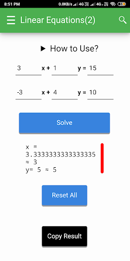 - Solving Linear Equations with 2 variables