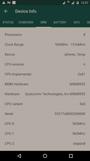 It gives full details of device Overview, Status, CPU, Battery, GPU, Sensor, Temperature