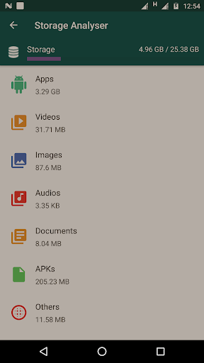 It analyst the entire device and provide details about Apps, Images, Audios, Videos, Documents, APKs, Others(Able to clean these unwanted data from here)
