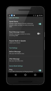 ★ You can set your own text to speak before Caller name or SMS and after Caller name or SMS.