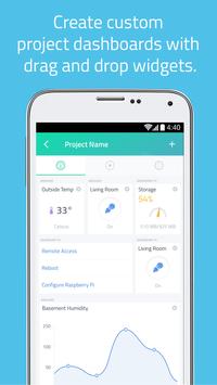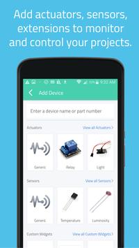 You can add, manage and control sensors and actuators from your phone’s dashboard from a library of drag and drop widgets.