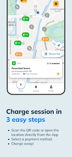Hanya menavigasi ke arah pengecas pilihan anda, mula mengecas dan membayar secara automatik selepas sesi anda berakhir.Lihat ketersediaan pengecas, tarifnya, kemajuan sesi caj anda dan pelbagai maklumat lain yang berkaitan dengan hanya beberapa paip.Br> • Mula dan hentikan sesi caj