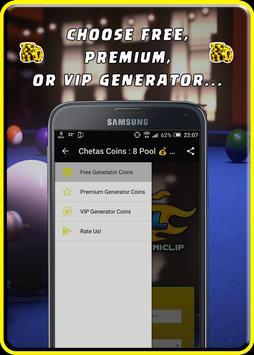 This app made only for joke and prank have fun withe your friends and is not a hack for 8 Ball Pool or hack app for it, and it provides any way to get unlimited free coins or give cash to your 8 Ball Pool account. This App (Chetas Coins - 8 Pool 💰 prank) is not affiliated with Miniclip.
