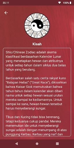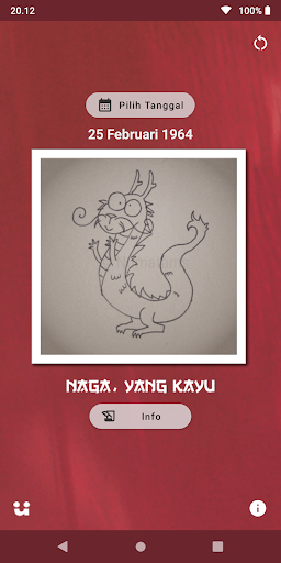 Permohonan ini boleh mengira zodiak (zodiak Cina) berdasarkan tarikh yang dipilih antara 1 Januari 1900 dan 31 Disember, 2040.