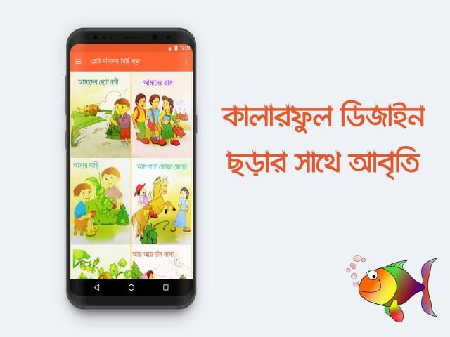 এই মোবাইল এপ্লিকেশনটিতে টোটাল ২০ টি ছড়া ( Bangla Kobita ) দেওয়া আছে, Drawing Note Book :) । সবগুলো ছড়া ( Bangali Kobita ) বেশ কালার ফুল UI তে দেওয়া হয়েছে। এতে করে যেনো ছোটরা বেশ আকৃষ্ট হয় এবং পড়ার চেষ্টা করে। খুব তাড়াতারি ভয়েজ এড করা আছে।