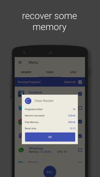 The application uses a sophisticated technology to optimize the performance of your device. It automatically kills low priority tasks every 2 hours. For maximum results you should do a manual boost once a day.