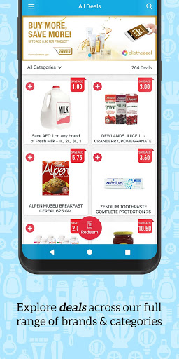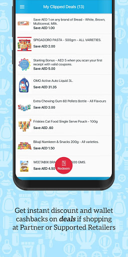 Kedai dengan klip perjanjian dan menebus kupon eksklusif dan tawaran untuk pembelian di Lulu, Carrefour, Abu Dhabi Coop, Choithram, Spar, Megamart, Kesatuan Co-Op, Sharjah Co-op, Al Maya, Safeer dan 12 Peruncit utama lain di seluruh UAE.
