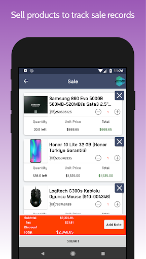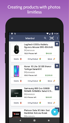 Stock manager app lets you add product details like name, product id, purchase and selling price, low quantity alert value, description about product and more. This app also supports adding product picture.