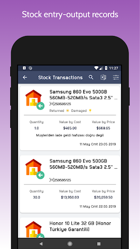 The app allows you to add or out product transactions. The app shows low stock products so you can decide what to buy for your inventory stock.