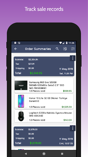 - Save your sales and purchases;