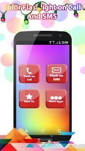 Best free Color flashlight on call and sms: LED torch flash app. Enable Led torch blinking flash Color LED flashlight for incoming calls & sms messages. Color Flash blinking on call alert when you received income call & sms. Color Flash Light Call & SMS: Torch LED Flash is a beautiful application that has disco lights for your party, music, colored torch with LED flashlight is very beautiful and fun to liven up your party producing a colored flash effect.