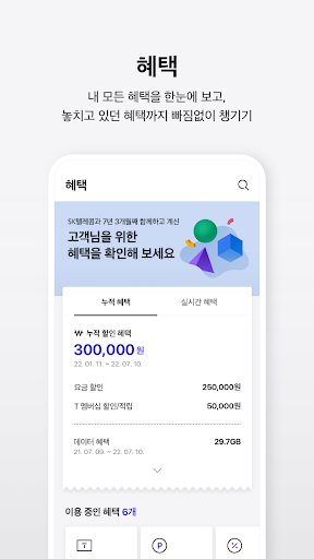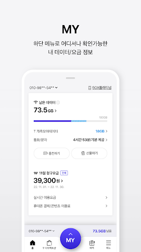 -Time sisa, yuran pengebilan, dan maklumat langganan yang dapat anda dapati sekilas melalui skrin saya yang boleh diperiksa di mana -mana sahaja. disediakan oleh SK Telecom Anda boleh menyemak/menggunakan pelbagai manfaat dan peristiwa. Br> ■ kadar saya