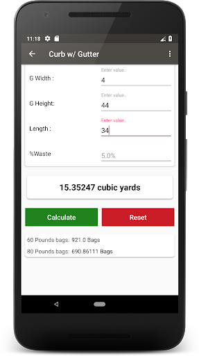 Concrete Calculator also keeps a running total allowing for multiple individual calculations and a grand total of cubic yards.