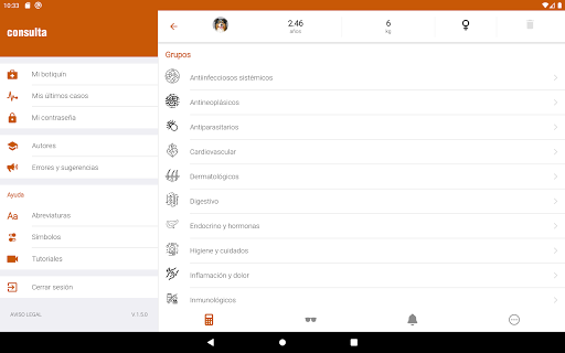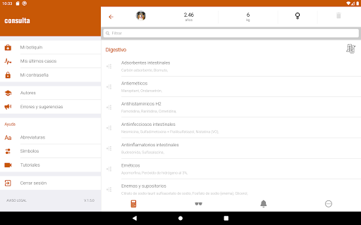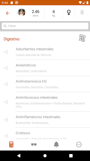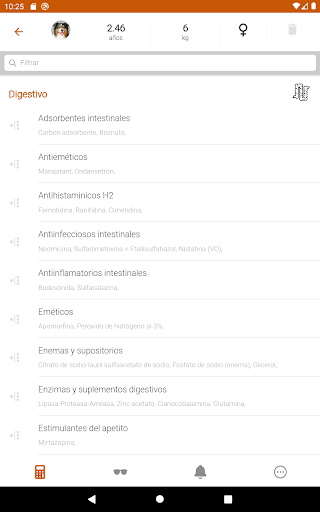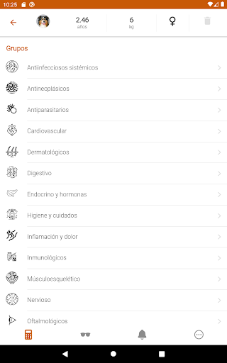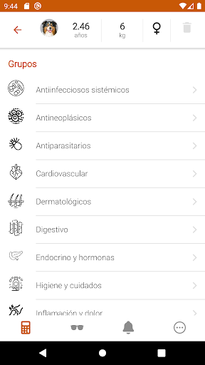 Por otra parte, ConsultaVet App ofrece información terapéutica únicamente sobre animales no productores de alimentos, con posibilidad de cálculo de dosis orientativas y generales en función de la especie y el peso.