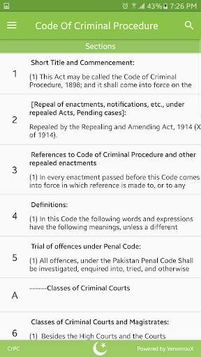 Permohonan yang komprehensif dan terkini yang pertama, yang mengandungi senarai lengkap artikel dan bab dari Kod Prosedur Jenayah (CRPC) 1898