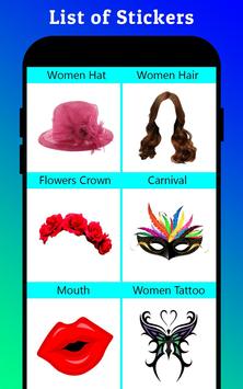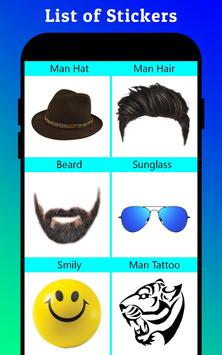 • Select a Mustache or Beard or Hair or any other sticker from the list and drag it to the right position, rotate it, multi touch to resize it and fit on your face.