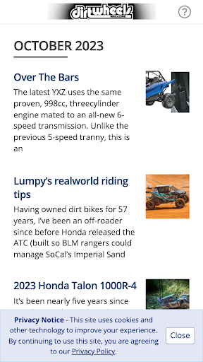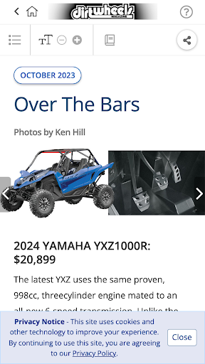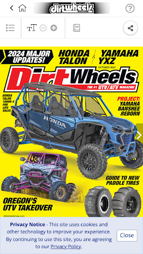 Majalah ATV nombor satu selama lebih dari 35 tahun, Dirt Wheels membawa anda segala-galanya di luar jalan ATV dan UTV World.Setiap isu bulanan dibungkus dengan ujian menunggang dan perlumbaan penuh dan ulasan ATV dan UTV terkini.Kami menguji setiap bahagian hop-up dan aksesori di bawah matahari untuk membuat rig anda lebih cepat dan melakukan lebih baik.Pro kami memberi anda petua menunggang bagaimana mengendalikan pelbagai jenis medan, dari pasir ke hutan ke lumpur ke padang pasir, ditambah dengan kami akan memberitahu anda di mana kawasan menunggang terbesar di planet ini terletak, bersama dengan liputan ATV terbaik/UTV Festival/Jamborees.Dan anda akan mendapat cara untuk semua dari perubahan tayar untuk membangun semula enjin.Aplikasi ini membolehkan anda membeli isu semasa dan masa lalu (yang boleh didapati dalam aplikasi) dan memuat turunnya ke peranti anda.Isu yang dibeli dalam aplikasi mempunyai ciri -ciri yang dipertingkatkan, termasuk liputan video khas, ditambah pautan kepada semua pengeluar 'laman web.12 isu (satu tahun) untuk $ 8.99.Muat turun salinan tunggal untuk $ 2.99 setiap satu.Langganan ini akan memasukkan isu semasa jika anda belum memilikinya.>