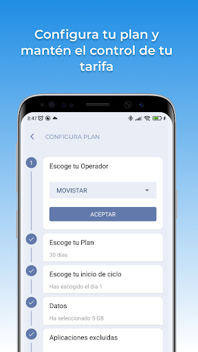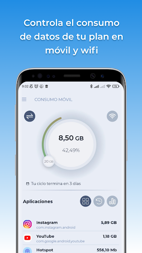 aplikasi ini akan memantau penggunaan anda Tidak kira: Movistar, Vodafone, Orange, Orange, Yoigo, O2, Jazztel, Simyo, Pepephone, Eusktaltel, R, Telecable, Amena, Telcel, At & amp; dan negara.