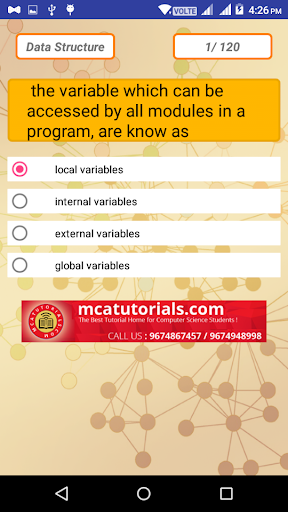 At the end of session , it displays the results with a PIE graph. You can share this result with your friends. If you want to learn more about the subject, the App also has tutorials for FREE. This is a comprehensive tool that prepares you for the Data Structure Exam.