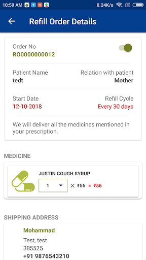 * Can add required medicines directly from database and add to cart for home delivery.