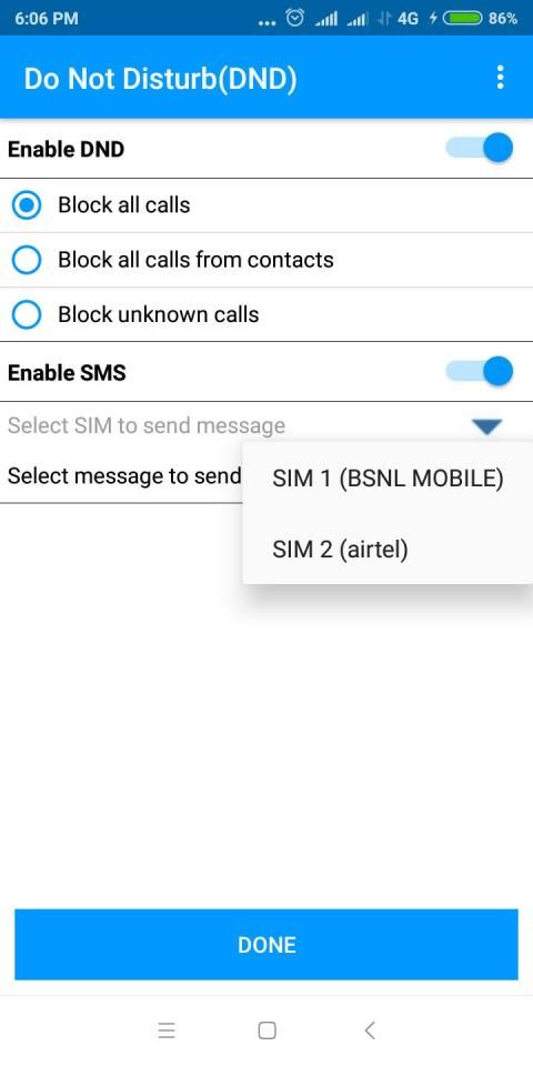 Do Not Disturb(DND) app help users to silent incoming calls/messages when they are busy according to their preference selected and send a customized SMS to the caller.