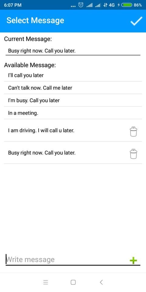 This application helps you to avoid calls and send a customised SMS in your busiest hours. At the same time notify the caller that you are busy and can not interact with them at that point of time.