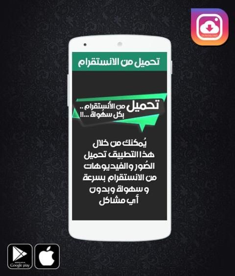 تطبيق تحميل جميع مقاطع الانستقرام "فيديو وصور" وحفظها على الهاتف ومشاركتها مع اصدقائك وذكر مصدرها بكل سهولة وبدون اية مشاكل , تطبيق بواجهة عربية وسهل الاستخدام.