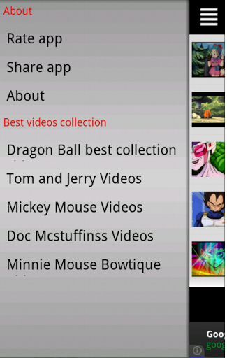 Dragon Ball Cartoon Videos App is a FREE App for your kids!Download this new app and let your kids watch their favorite cartoon Dragon Ball while you are doing some errands for the family. My son love this cartoon and I think your kids will love this app too.Features of Dragon Ball Cartoon Videos App1. List out all the best episode of this popular cartoon.2. Preview video before playing it.3. Support video view in portrait and landscape mode.4. The videos can be played within the app.5. Provide other popular cartoon videos category such as: the best collections of Mickey Mouse cartoon videos, Tom and Jerry videos, Doc Mcstuffinss videos, Minnie Mouse Bowtique videos..About Dragon Ball Dragon Ball (Doragon Boru) is a Japanese manga series written and illustrated by Akira Toriyama. It was originally serialized in Weekly Shonen Jump from 1984 to 1995, with the 519 individual chapters published into 42 tankobon volumes by Shueisha. Dragon Ball was inspired by the classical chinese novel Journey to the West. The series follows the adventures of the protagonist, Son Goku, from his childhood through adulthood as he trains in martial arts and explores the world in search of the seven mystical orbs known as the Dragon Balls, which can summon a wish-granting dragon when gathered. Along his journey, Goku makes several friends and battles a wide variety of villains, many of whom also seek the Dragon Balls for their own desires.Download the Dragon Ball Cartoon Videos App now! Enjoy it and have funny time.For any problem related to this app. Don't hestite to send us an email. We will reply ASAP.Thanks.*********DISCLAIMER: The content provided in this application is hosted on youtube and is available in the public domain. We have not uploaded any videos to YouTube. This application is just an organized way to browse and view YouTube videos in another way. This app is unofficial and is simply a shortcut to the free information offered by youtube.Any problems or suggestions, please contact us.Source: wikipediakeywords: kids videos, nursery videos, disney junior app,Dragon Ball app, Dragon Ball video, best Dragon Ball