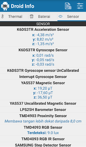 : Semua sensor pada peranti anda dengan masa ujian sebenar.