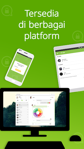 Messenger swasta eleet boleh diakses dari telefon pintar dan desktop dengan pelbagai OS.