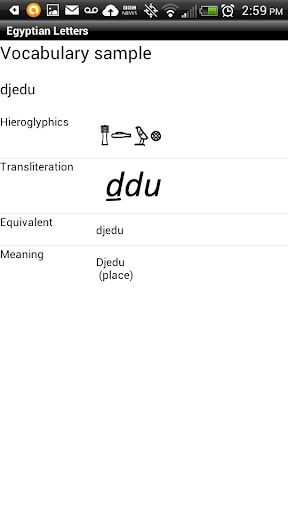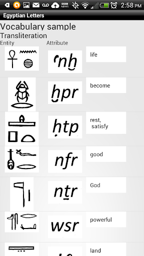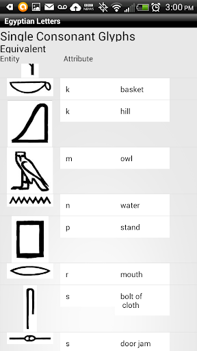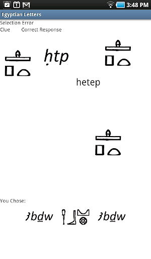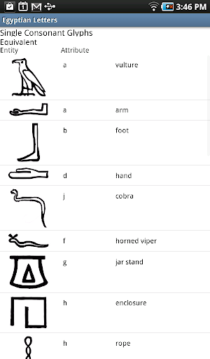 Egyptian Letters is designed to help beginning Egyptophiles learn to recognize and interpret a set of Middle Egyptian Hieroglyphs and their relationship to the English Alphabet.