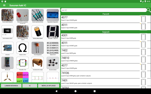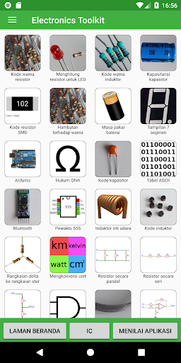 Electronics Toolkit adalah aplikasi dengan berpuluh-puluh kalkulator dan rujukan.