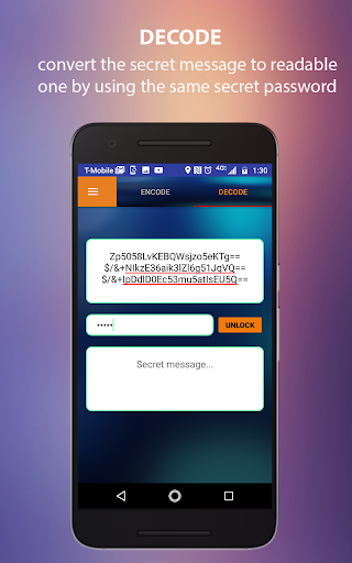 Using this message encoding app, you can turn your messages into coded and secret messages with specific shareable password. The secret message becomes locked and coded with this message lock app, so you can then send it to whoever you want to. The receiver would be able to decode and convert the secret message to readable one by using the same secret password that you used to lock the message. Simply write your message, put it in the message encoding field, enter your chose password and let this amazing secret message app generate it within seconds.