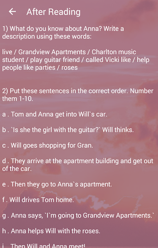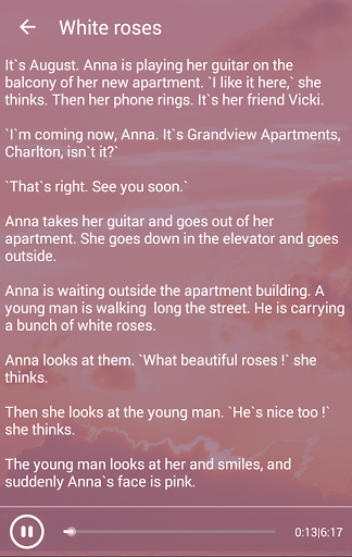 Dengan suara dari penutur asli bahasa Inggeris, latihan setelah selesai setiap bahagian cerita pendek dan selesai semua cerita, Cerita Audio Mendengar Bahasa Inggeris adalah cara terbaik untuk membantu anda meningkatkan Bahasa Inggeris anda dan berehat pada masa yang sama dengan cerita Inggeris yang hebat.