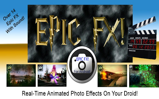 Create AMAZING HD pictures with Hollywood style 3D special FX Then add finishing touches with Instagram and upload to facebook or any other social network and much more...This App has over 20 And Growing animated presets with sound FX. Import ANY photo or shoot images in realtime. Add explosions, fire, smoke, and other awesome animated effects to your photos. For every 1,000 downloads, we will release 5 new FX Works on Tablets and Phones Give us a try... and GET EPICNOTICE: Michael Scott Productions is not endorsed or certified by Instagram or Instagram, Inc. Instagramtm is a registered trademark of Instagram, Inc.