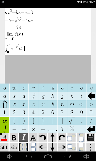 Ini adalah editor persamaan untuk telefon dan tablet.Anda boleh menulis dokumen matematik dan termasuk gambarajah litar geometri dan fizik.Dokumen bertulis boleh disimpan sebagai PNG atau PDF.