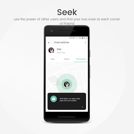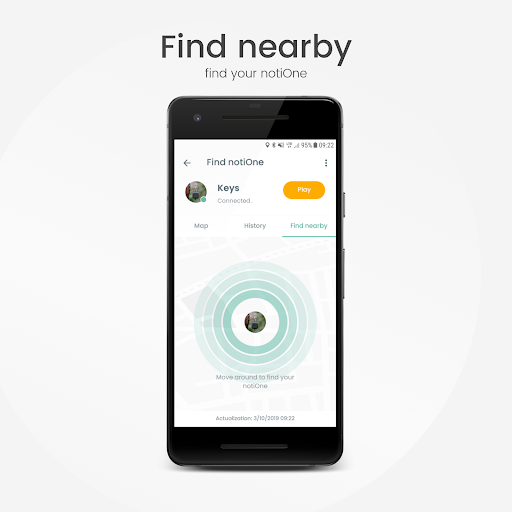 ✔ Cari berdekatan - Radar membawa anda ke peranti Noteione yang berdekatan (misalnya Kekunci Tersembunyi di bawah almari pakaian)