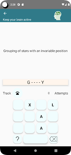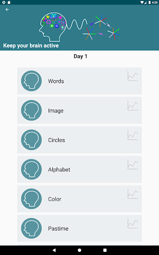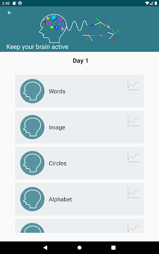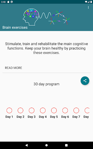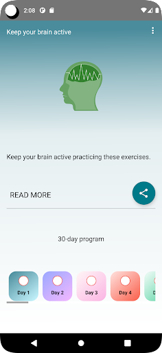 Dalam aplikasi ini, anda boleh melakukan latihan otak selama 30 hari yang bertujuan untuk merangsang kemahiran kognitif utama kami, seperti perhatian, persepsi, memori jangka pendek, penyelesaian masalah, pemampatan.Anda juga akan mendapati, antara lain, sekumpulan aktiviti hiburan seperti teka -teki gambar, teka -teki muzik, permainan kata, permainan matematik yang sepadan, perebutan kata, huruf yang tidak jelas, permainan matematik yang sejuk.