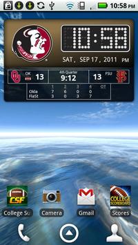 **7 Day Free Trial!** Florida State Seminoles Live Clock, with college football and basketball scores below the clock when games are in progress. This widget lets you replace the standard clock in your phone with a custom FSU Noles clock, with instant access to ACC schedules, news and scores (as well as other conferences). You don’t even need to open the app to see live scores—they appear automatically during live games. When no games are on, you’ll see the latest ACC news headlines below the clock.
