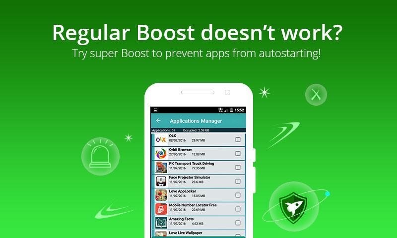 with best Booster feature frees up RAM by cleaning background processes & tasks, and speeds up your android phone by over 80%, enjoy games & apps performance.