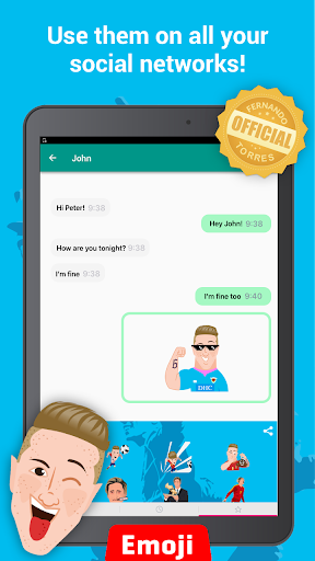 You will have hundreds of emojis and stickers, static and animated, for sharing on your favorite social networks. You also will be able to install an exclusive keyboard of the Spanish football player or use it in the message app to easily share emojis without copy and pasting, just drag any of your favorite stickers.