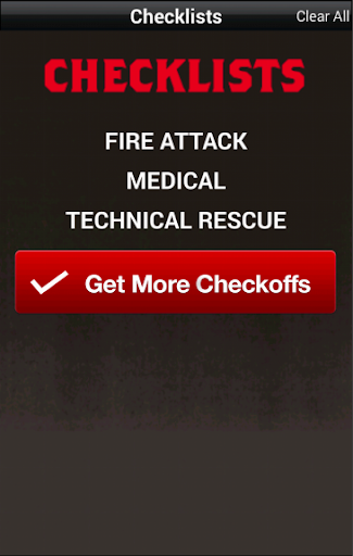 - Checkoffs: The many different types of scenes that an emergency responder can find themselves in are included here with the ability to check off necessary functions. The checkoffs section is divided into three sections. Medical, Firefighting, and Technical Rescue.