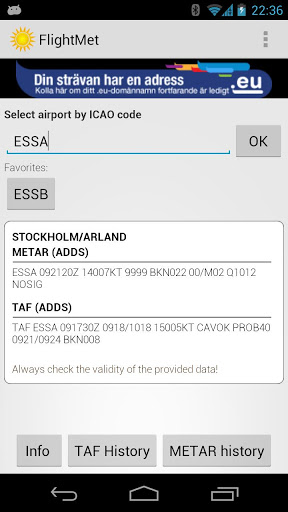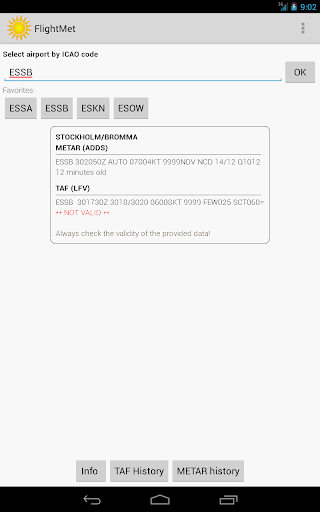 (note: for taf/metar fallback to ADDS will be made if no answer from LFV. This will be indicated in the GUI)