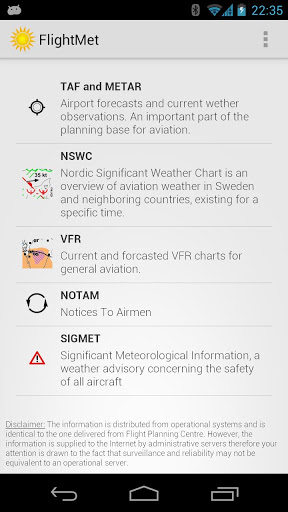 FlightMet provides you with the latest aviation weather. You can search/browse the following services provided by LFV: