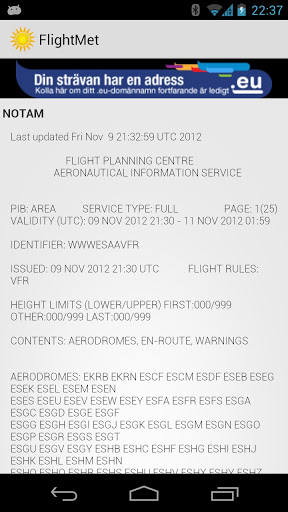 All data is fetched directly from LFV. Always make sure the data is valid before flying!!