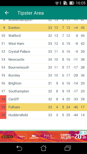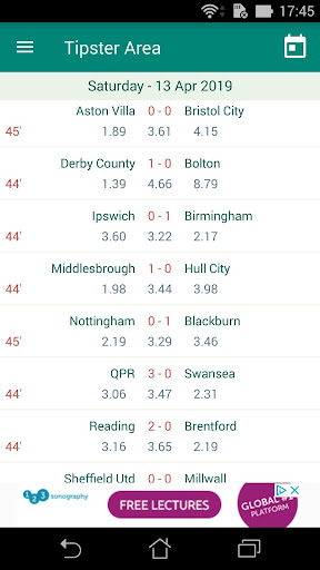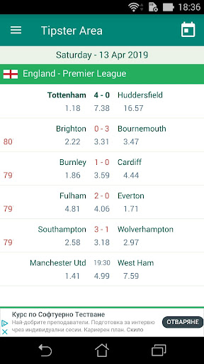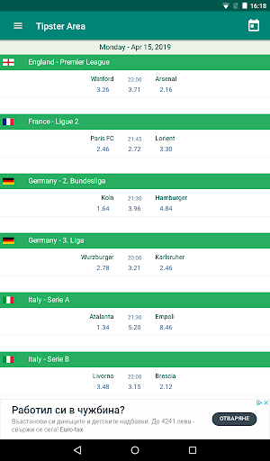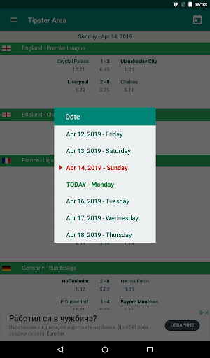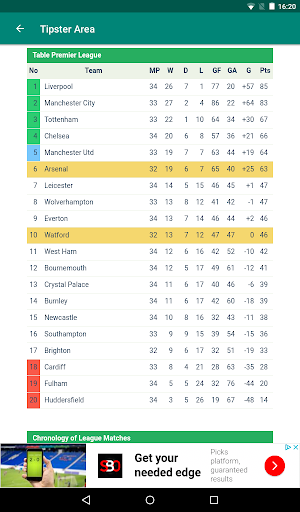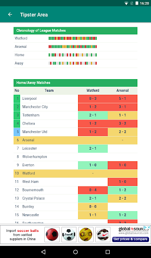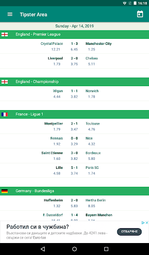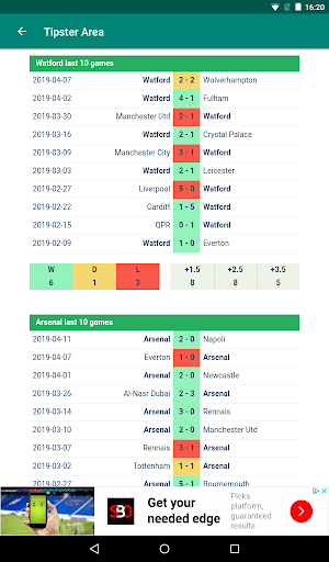 Kawasan Tipster adalah aplikasi Bola Sepak / Bola Sepak yang menunjukkan perlawanan mengikut tarikh dan mempunyai butiran permainan yang sangat terperinci: