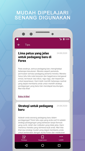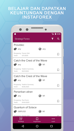 Dengan memasang aplikasi ini, anda akan mendapat akses kepada strategi perdagangan yang membolehkan anda untuk memperoleh pengalaman dan menambahkan keuntungan.